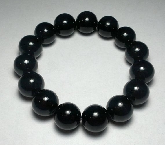 At a Great PricePersonalized Gift 12mm Black Black Jade Stretchable Bracelet Round, Smooth 18cm for mens, womens, gf, bf and adults.