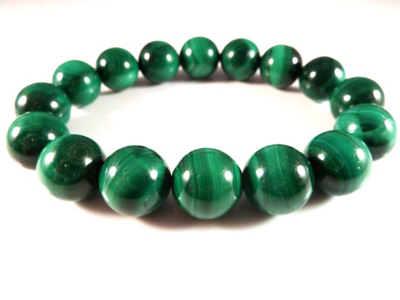 At a Great PricePersonalized Gift 12mm Stretchable Green Malachite Bracelet Round, Smooth 7.5" for mens, womens, gf, bf & Adult.