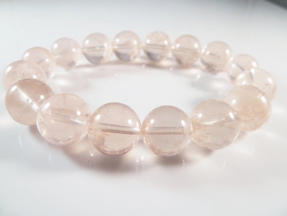 At a Great PricePersonalized Gift 12mm Stretchable Pink Sericite in Quartz Bracelet Round, Smooth 7.5" for mens, womens, gf, bf & Adult.