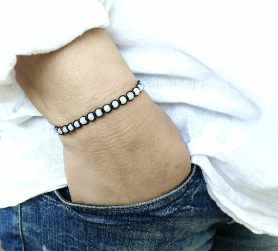 Personalized Gift 4mm White Milk Quartz SHAMBALLA Adjustable Bracelet Drum, Smooth 18cm for mens, womens, gf, bf and adults.