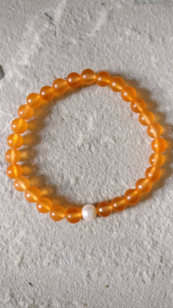 At a Great PricePersonalized Gift 6mm Orange South American orange Jade Stretchable Bracelet Round, Faceted 18cm for mens, womens, gf, bf and adults.