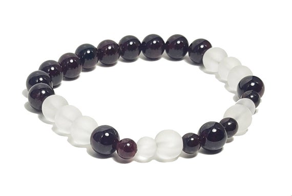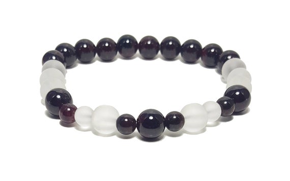 At a Great PricePersonalized Gift 6mm Stretchable red & white Garnet & Clear Quartz Bracelet Round, Smooth 7" for mens, womens, GF, BF, Adults.