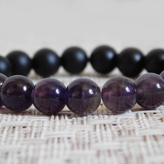 At a Great PricePersonalized Gift 8mm Stretchable Black & Purple Amethyst and Matte Onyx Bracelet Round, Smooth 7" for mens, womens, gf, bf & Adult.
