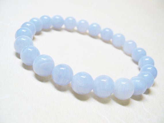 At a Great PricePersonalized Gift 8mm Stretchable blue Blue Lace Agate Bracelet Round, Smooth 7" for mens, womens, GF, BF, Adults.