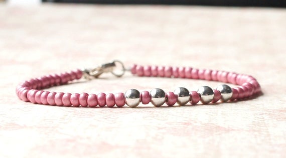 At a Great PricePink Seed Bead Bracelet, Stacking Bracelet, Minimalist Bracelet, Dainty Bracelet, Simple Bracelet, Beaded Bracelet, Silver Beads Bracelet 3-5mm Code- WAR9130