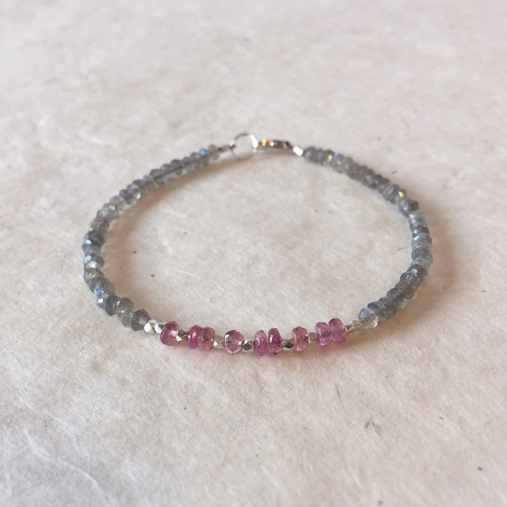 At a Great PricePink Tourmaline Labradorite Karen Hill Tribe Thai Silver Beaded Bracelet, Sundance Style, Boho Stacking Bracelet 3-4mm Code- WAR6382