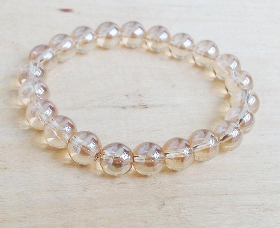 Positive Energy 10mm Golden Gold EN CRISTAL Stretchable Bracelet Round, Smooth 18cm for mens, womens, gf, bf and adults.