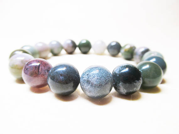 At a Great PricePositive Energy 10mm Stretchable Multi Moss Agate Bracelet Round, Smooth 7.5" for mens, womens, GF, BF, Adults.