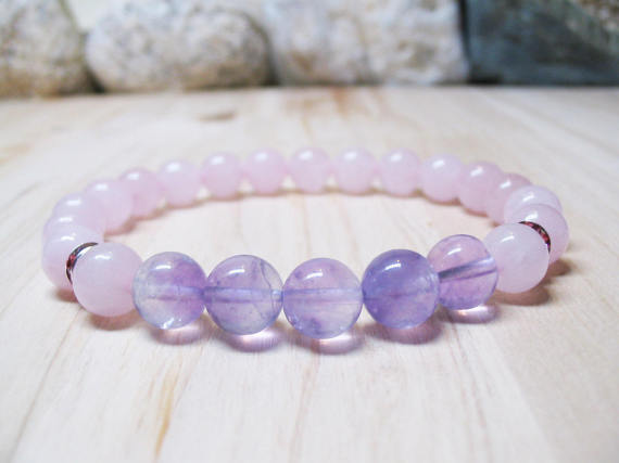 At a Great PricePositive Energy 8mm Stretchable Purple & pink Rose Quartz & Amethyst Bracelet Round, Smooth 7" for mens, womens, GF, BF, Adults.