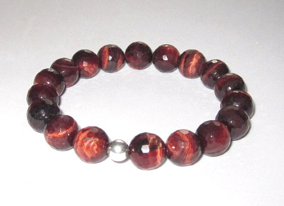 At a Great PricePositive Energy Silver helling 10mm stretchable Red Tiger Eye Bracelet Round, Smooth 7.5" for mens, womens, GF, BF, Adults.