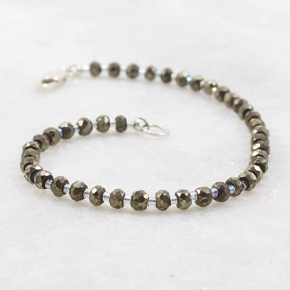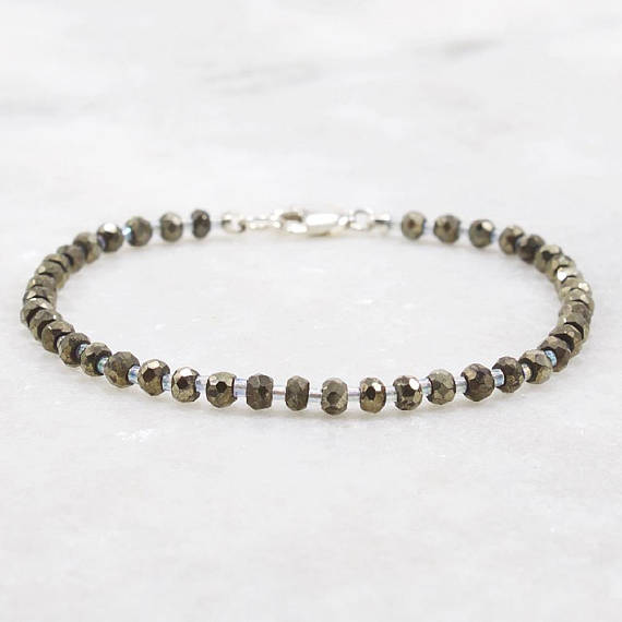 At a Great PricePyrite Bracelet Sterling Silver Gemstone Bead Jewelry Stacking Layering Delicate Beaded Gift for Her Gift for Women Girlfriend Gift 3mm Code- WAR6515
