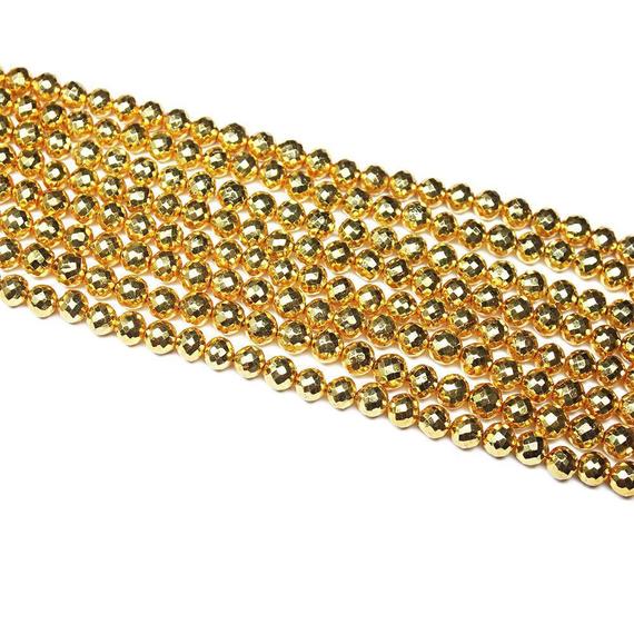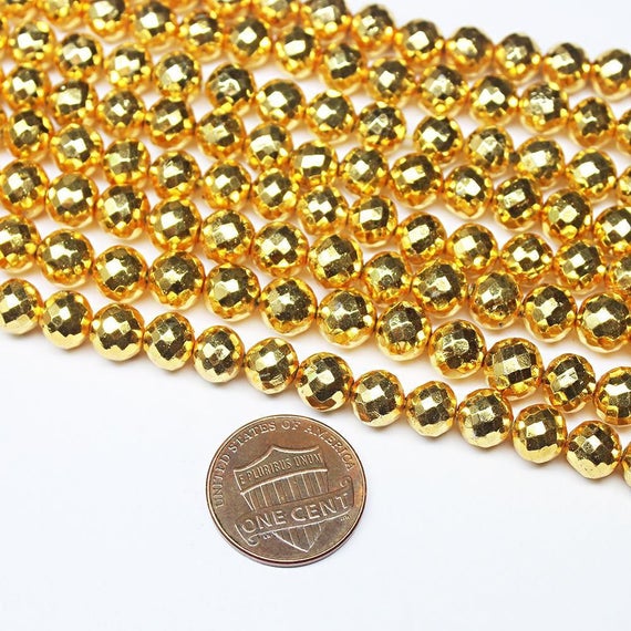 At a Great Pricepyrite round ball faceted 12'' long strand gemstone beads, jewelry supplies for jewelry making, bulk beads, for meditation jewellery for Reiki Healing gemstone 7mm