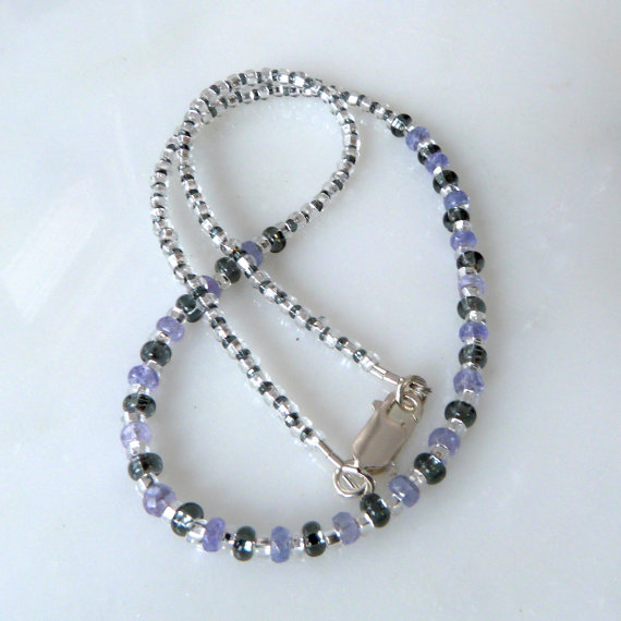 At a Great PriceQuality Violet Tanzanite Faceted Gemstone Strand Necklace Accented with Silver Lined Czech Glass Beads, Handmade 4-5mm Code- WAR6828