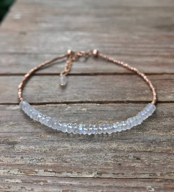 Rainbow moonstone bracelet / Moonstone beaded bracelet / Rose gold moonstone / Gemstone bracelet / Gift for her / June birthstone bracelet 3 mm Code- WAR6709