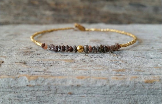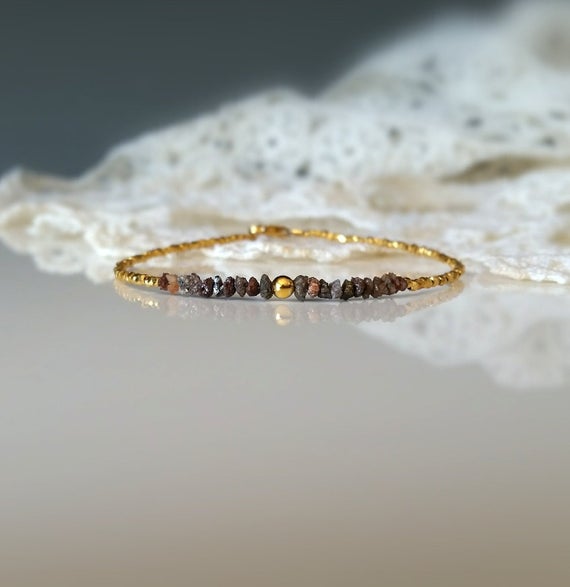 At a Great PriceRare Raw Red Diamond and Gold Vermeil Beads Bracelet, Natural No Treatment Rough Gems Uncut Genuine Diamond Jewelry,Delicate Rustic Bracelet 3mm Code- WAR6662