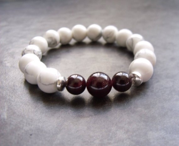At a Great PriceRed Garnet and White Howlite Gemstone Hill Tribe Silver Unisex Stretch Yoga Bracelet Boho Bracelet Stacking Bracelet 10mm and 8mm Code- WAR6490