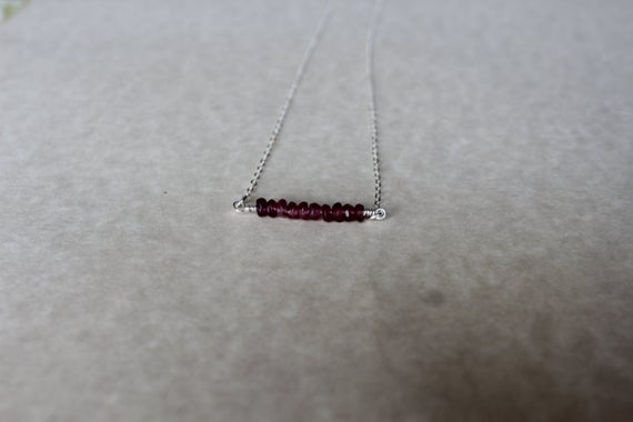 At a Great PriceRhodolite Garnet Sterling Silver Bar Pendant on a Sterling Silver Chain Unique Bar Style Beaded Garnet Necklace Beaded Bar Necklace 3mm Code- WAR9082