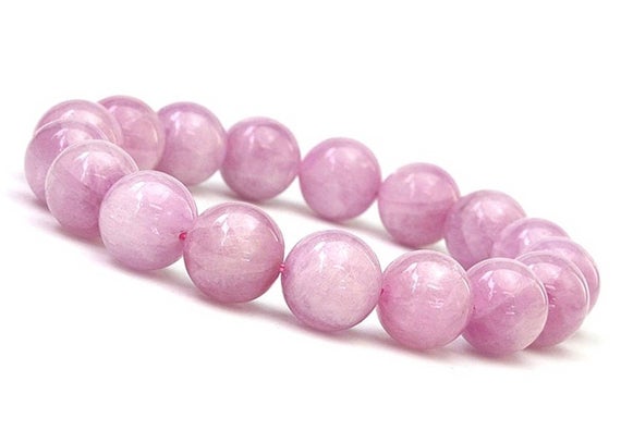 At a Great PriceRock Gift 10mm Pink Natural Kunzite Stretchable Bracelet Round, Smooth 18cm for mens, womens, gf, bf and adults.