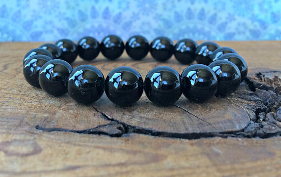 At a Great PriceRock Gift 10mm Stretchable Black Black Tourmaline Bracelet Round, Smooth 7" for mens, womens, gf, bf & Adult.