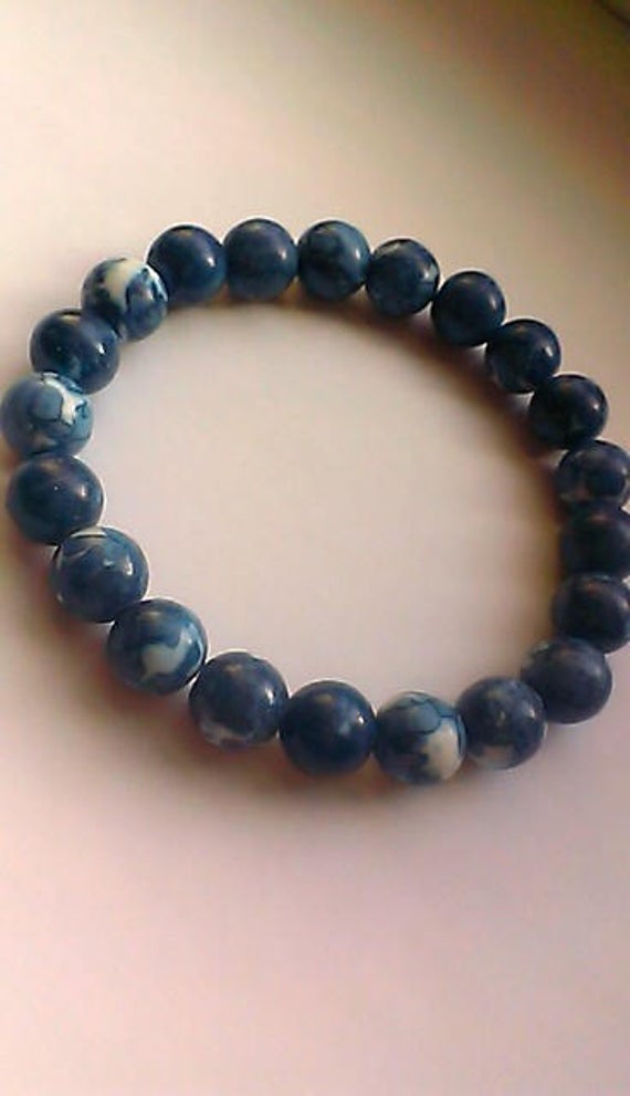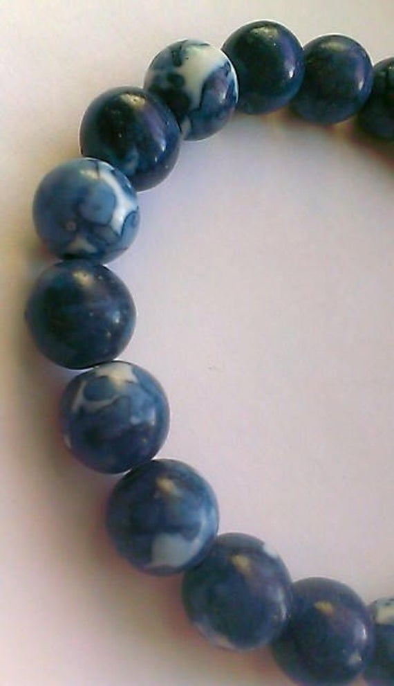 At a Great PriceRock Gift 10mm Stretchable Blue Blue Jade Bracelet Round, Smooth 7.5" for mens, womens.