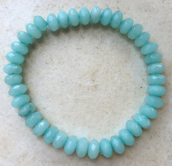 At a Great PriceRock Gift 5x8mm Blue Aquamarine Stretchable Bracelet Rondelle, Faceted 18cm for mens, womens, gf, bf and adults.