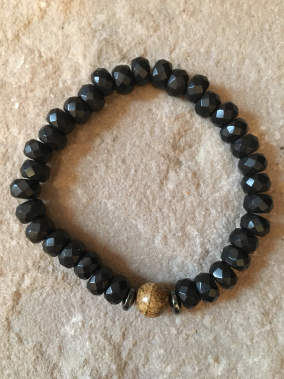 At a Great PriceRock Gift 5x8mm Multi Colour ure Jasper & Hematite Stretchable Bracelet Rondelle, Faceted 18cm for mens, womens, gf, bf and adults.