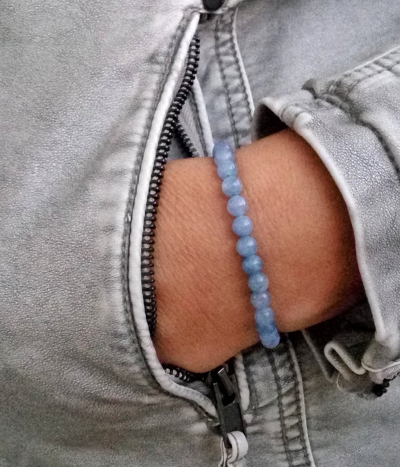 At a Great PriceRock Gift 6mm Blue AQUAMARINE Stretchable Bracelet Round, Smooth 18cm for mens, womens, gf, bf and adults.