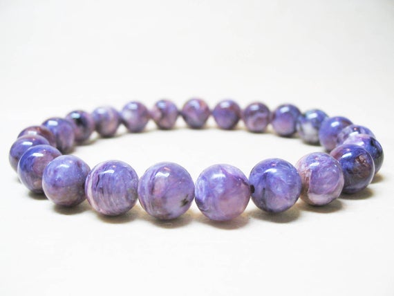 Rock Gift 8mm Stretchable blue Charoite Bracelet Round, Smooth 7" for mens, womens, GF, BF, Adults.