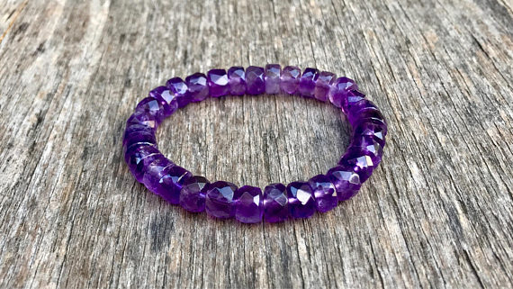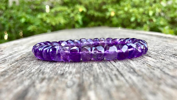 At a Great PriceRock Gift 8x5mm Stretchable Purple Amethyst Bracelet Rondelle, Faceted 7" for mens, womens, gf, bf & Adult.