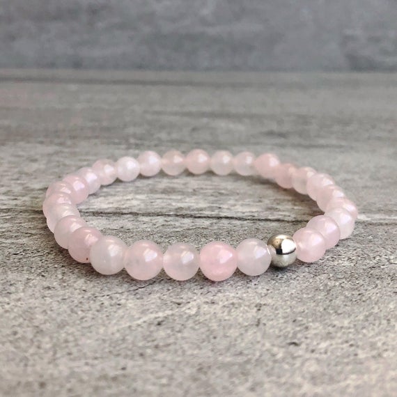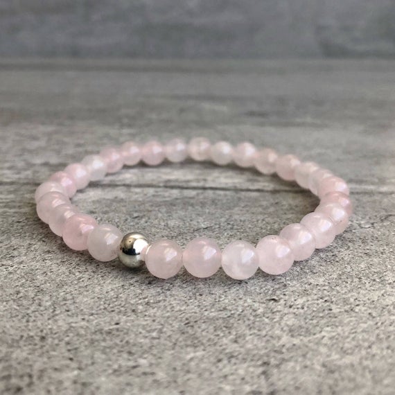 At a Great PriceRose Gold Anxiety Gemstone 6mm Pink Rose Quartz Stretchable Bracelet Round, Smooth 18cm for mens, womens, gf, bf and adults.