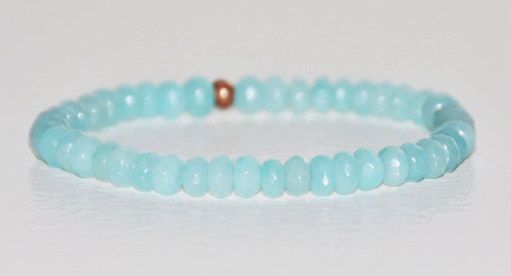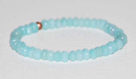 At a Great PriceRose Gold Dainty Slave Loose 4mm Sky Blue Genuine Aquamarine Stretchable Bracelet Rondelle, Faceted 18cm for mens, womens, gf, bf and adults.