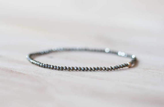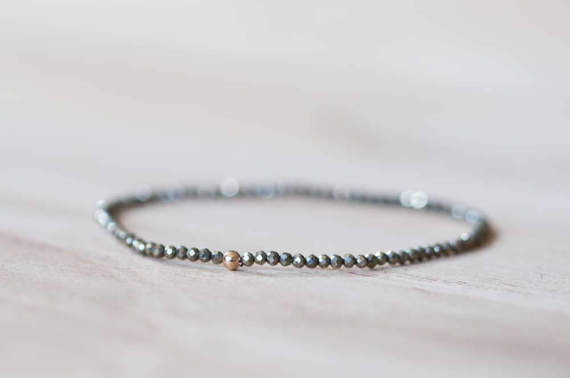 At a Great PriceRose Gold Grounding 2.5mm Black Pyrite Stretchable Bracelet Round, Faceted 18cm for mens, womens, gf, bf and adults.