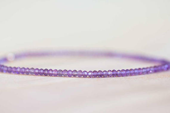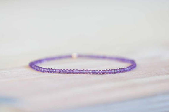 At a Great PriceRose Gold Handmade Beaded 2-2.5mm Purple Amethyst Stretchable Bracelet Round, Faceted 18cm for mens, womens, gf, bf and adults.