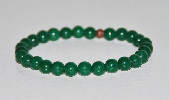 Rose Gold Handmade Beaded 4mm Green Emerald Green Jade Stretchable Bracelet Round, Smooth 18cm for mens, womens, gf, bf and adults.