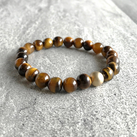 Rose Gold Handmade Beaded 8mm Multi Colour Tiger's Eye Stretchable Bracelet Round, Smooth 18cm for mens, womens, gf, bf and adults.