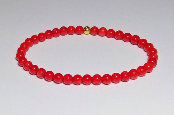 At a Great PriceRose Gold Personalized Gift 4mm Red RED CORAL Stretchable Bracelet Round, Smooth 18cm for mens, womens, gf, bf and adults.