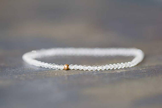 At a Great PriceRose Gold Positive Energy 2mm White Clear Quartz Stretchable Bracelet Round, Faceted 18cm for mens, womens, gf, bf and adults.