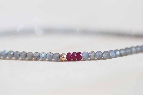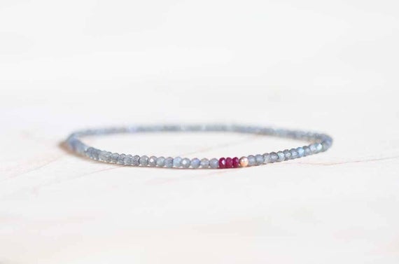 Rose Gold Wholesale 2.5mm Multi Colour Labradorite & Ruby Stretchable Bracelet Round, Faceted 18cm for mens, womens, gf, bf and adults.