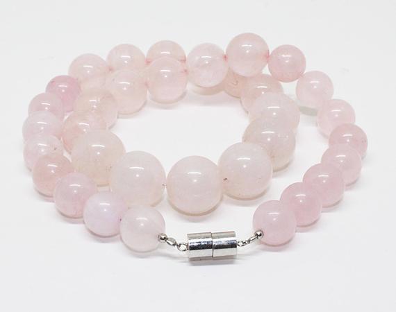 At a Great Pricerose quartz beaded necklace round ball smooth 18'' long strand gemstone beads, jewelry supplies for jewelry making, bulk beads, for meditation jewellery for Reiki Healing gemstone 12mm to 16mm