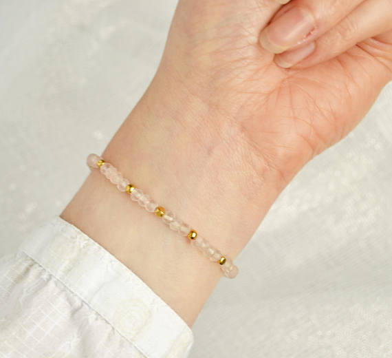 At a Great PriceRose Quartz Bracelet - Pink Gold Bracelet - Dainty Gemstone Bracelet - Romantic Gift For Her - Heart Chakra Jewelry 4mm Code- WAR6902