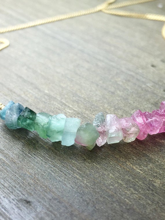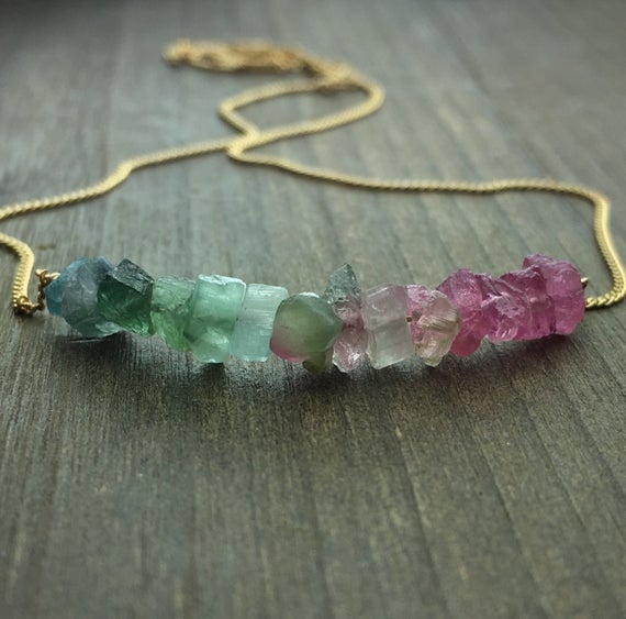 At a Great PriceRough gemstone necklace rough gemstone bar necklace watermelon tourmaline necklace sapphire necklace raw gift for her gift for women wife 4-6mm Code- WAR6689