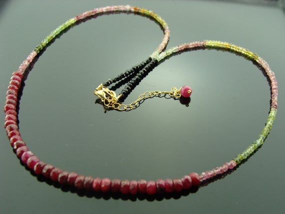 At a Great PriceRuby and Watermelon Tourmaline 14k Gold Filled or Sterling Silver Gemstone Necklace 3-4mm Code- WAR6594