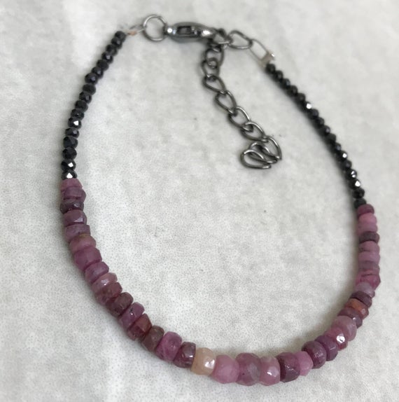 At a Great PriceRuby & Black Spinel dazzling Faceted (certified) genuine gemstone dainty bracelet 4x3/3x2mm Code- WAR6619