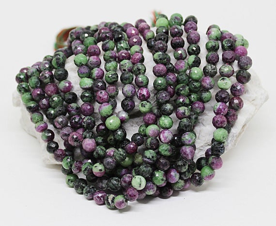 ruby zoisite round ball faceted 13'' long strand gemstone beads, jewelry supplies for jewelry making, bulk beads, for meditation jewellery for Reiki Healing gemstone 7mm to 8mm