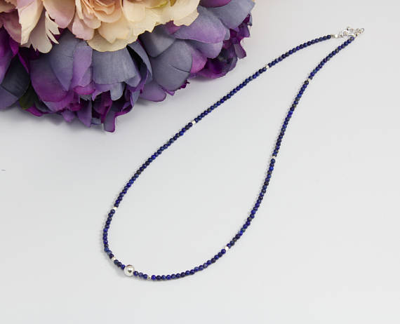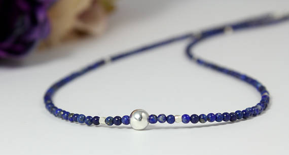At a Great PriceShort Necklace.Tiny Lapis Beads Necklace.Short Beaded Necklace. Minimalist Beaded Necklace,Blue Choker,Stacking Necklace for Woman 1-4 mm Code- WAR9021