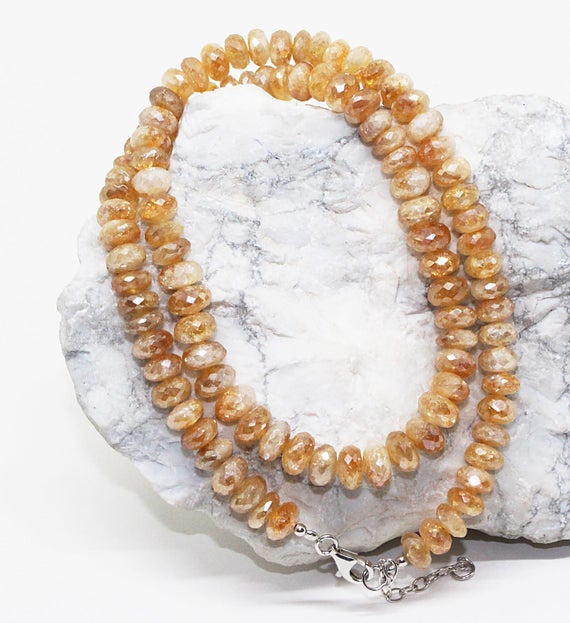 At a Great Pricesilver coated citrine rondelle faceted 18'' long strand gemstone beads, jewelry supplies for jewelry making, bulk beads, for meditation jewellery for Reiki Healing gemstone 8mm to 9mm