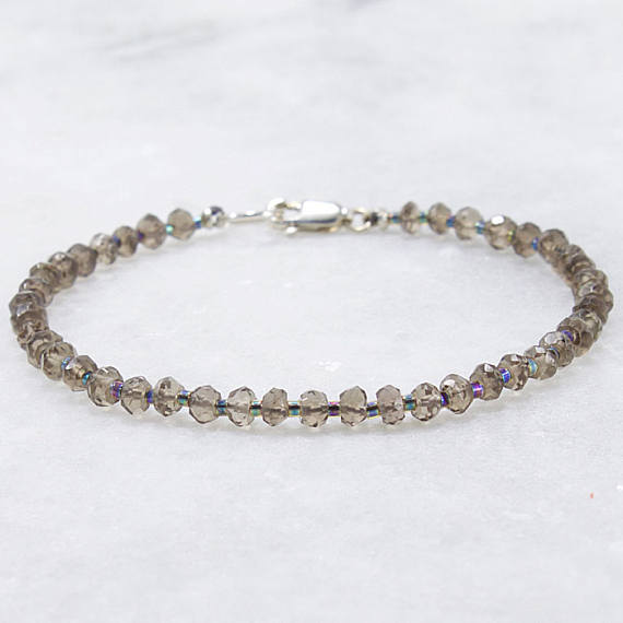 At a Great PriceSmoky Quartz Bracelet, Stacking Bracelet, Beaded Bracelet, Brown Gemstone, Sterling Silver, Quartz Jewelry 3mm Code- WAR6540