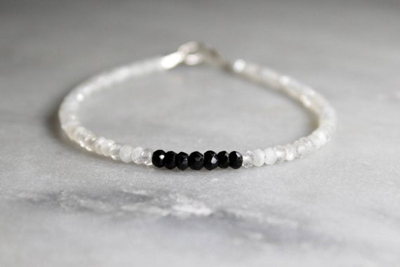 At a Great PriceSpiritual Moonstone Bracelet with Meaning | Black & White Bead Bracelet | Black Tourmaline and Moonstone Bead Bracelet | Cherokee Jewelry 3mm Code- WAR6046