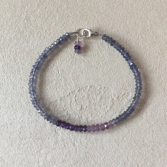 Sterling Silver Iolite Amethyst Beaded Bracelet with Dangle, Sundance Style, February Birthstone, February Birthday, Boho Stack Bracelet 3-4mm Code- WAR6408