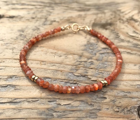 At a Great PriceSunstone Bracelet- Gold Filled- Delicate- Energy Healing Jewelry- Stacking- Boho 3 mm Code- WAR6794
